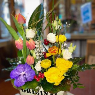 A notre plus grand plaisir, Sandrine de la Boutique fleurs de Bernex revient nous faire une petite visite. Elle nous propose de nous accompagner pour la  confection d’un magnifique arrangement floral printanier, le temps d’une soirée.
